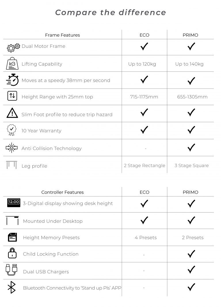 - 3-digit display shows the height of the desk