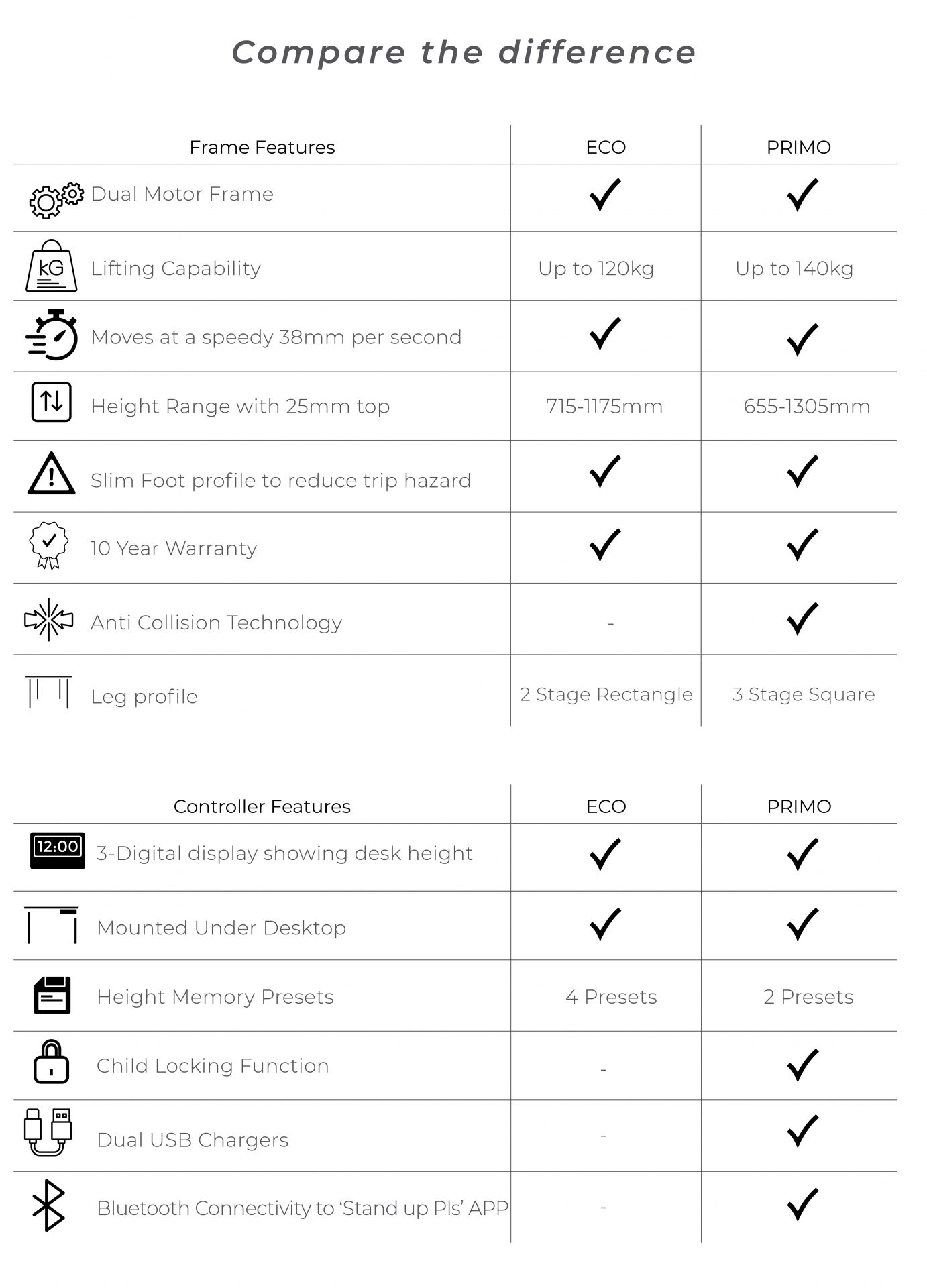 - 4 Height memory Presets